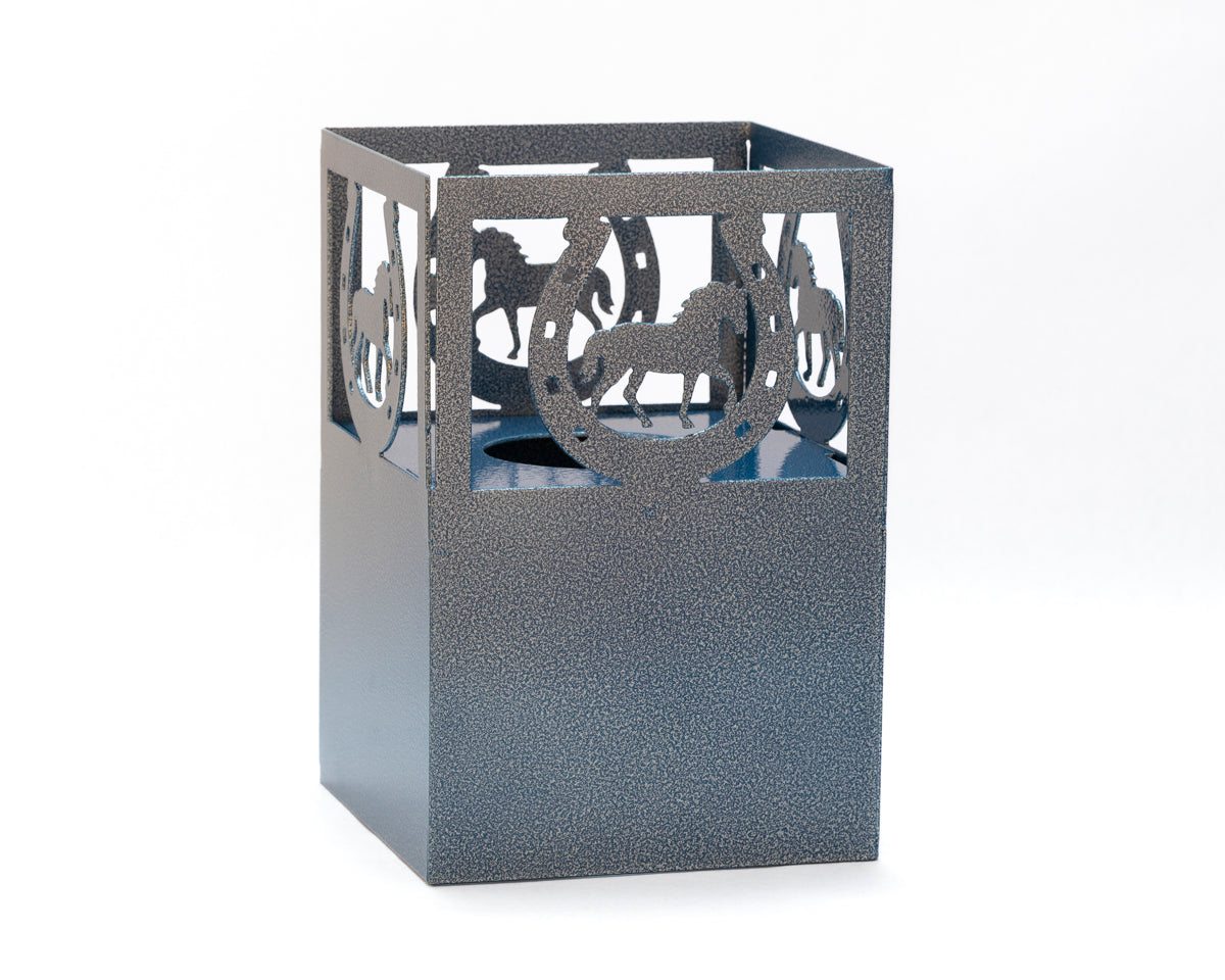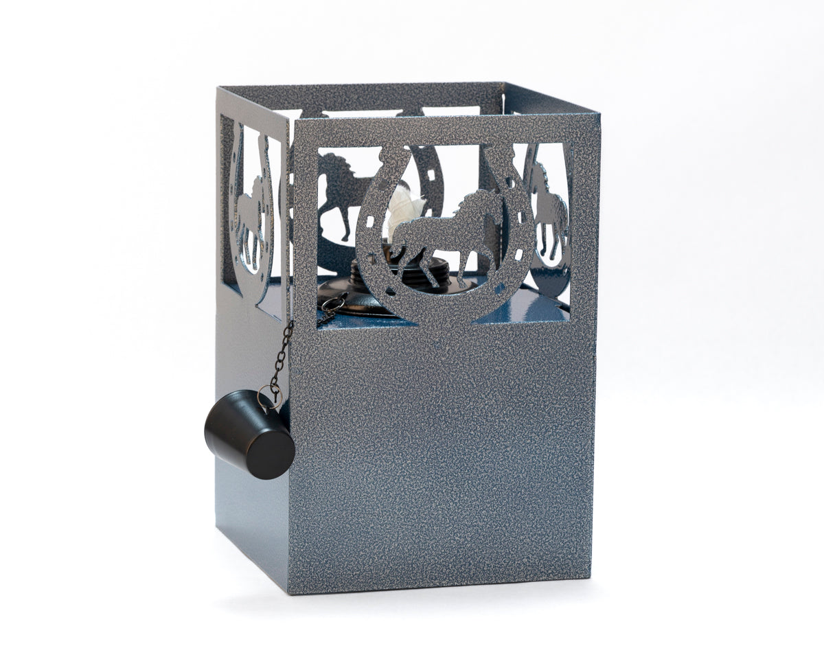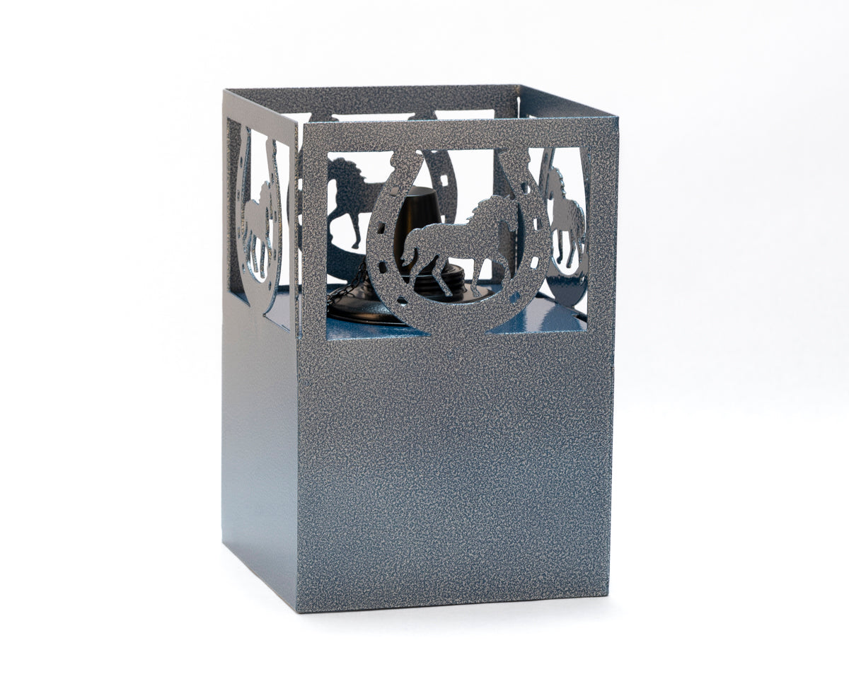 The Terra Glow - Lucky Trail adds western flair with a horse inside a horseshoe. It’s a glowing good luck piece for rustic décor and outdoor gatherings.